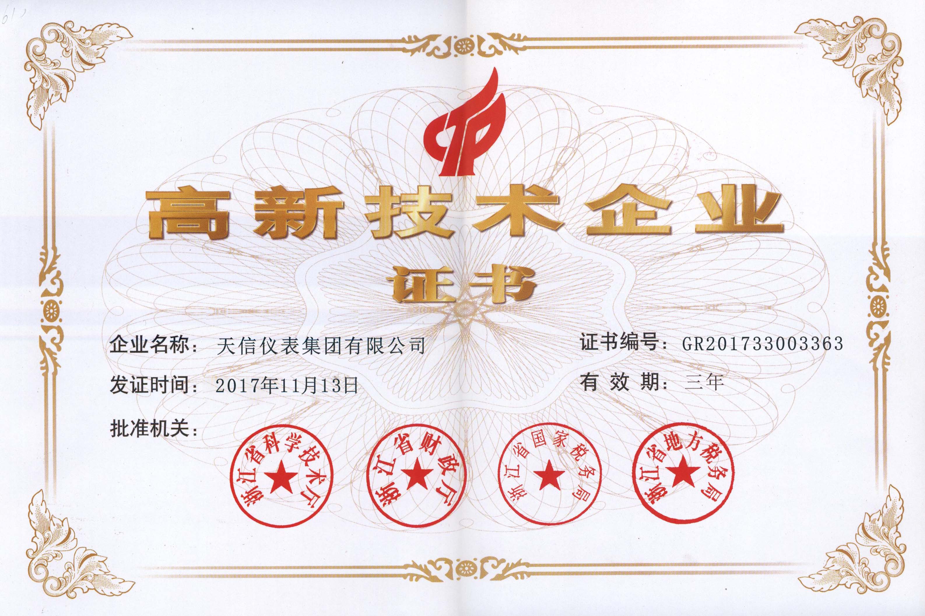 • 高新技术企业证书