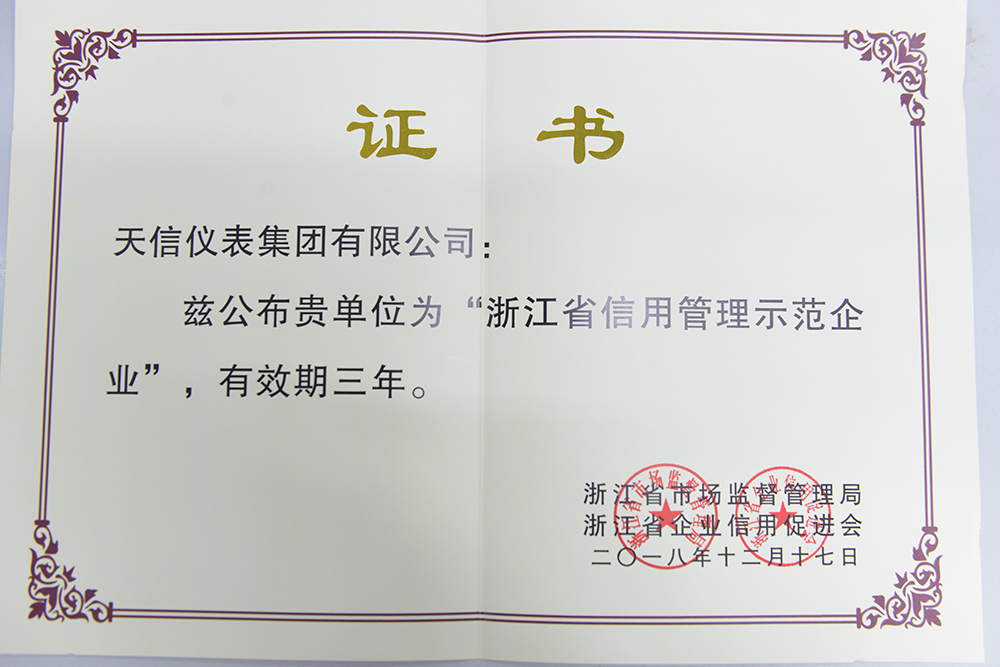 • 年度“浙江省信用管理示范企业”